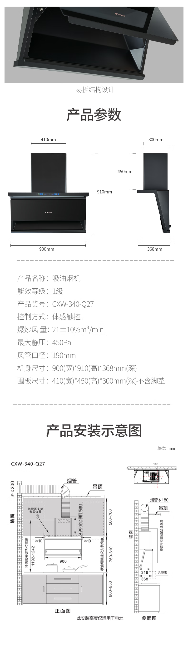 烟机安装尺寸: