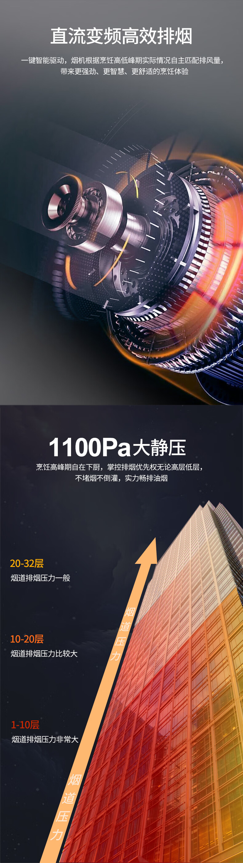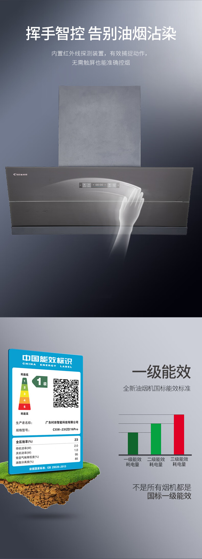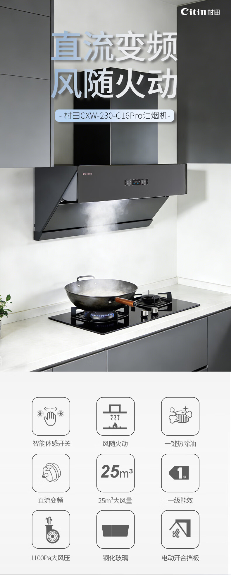 +6键超薄彩屏开关 +云米灰箱体 +全黑钢化玻璃 +风随火动 +直流变频 +可拆油网 +电动开合挡板 +热清洗 +千帕风压