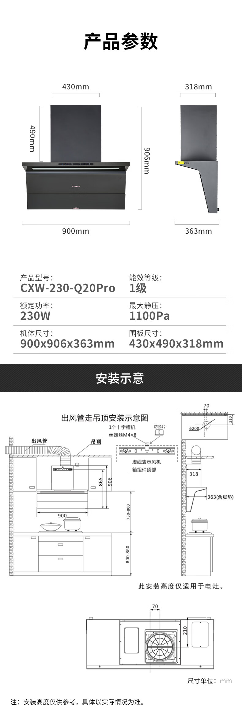 烟机安装尺寸: